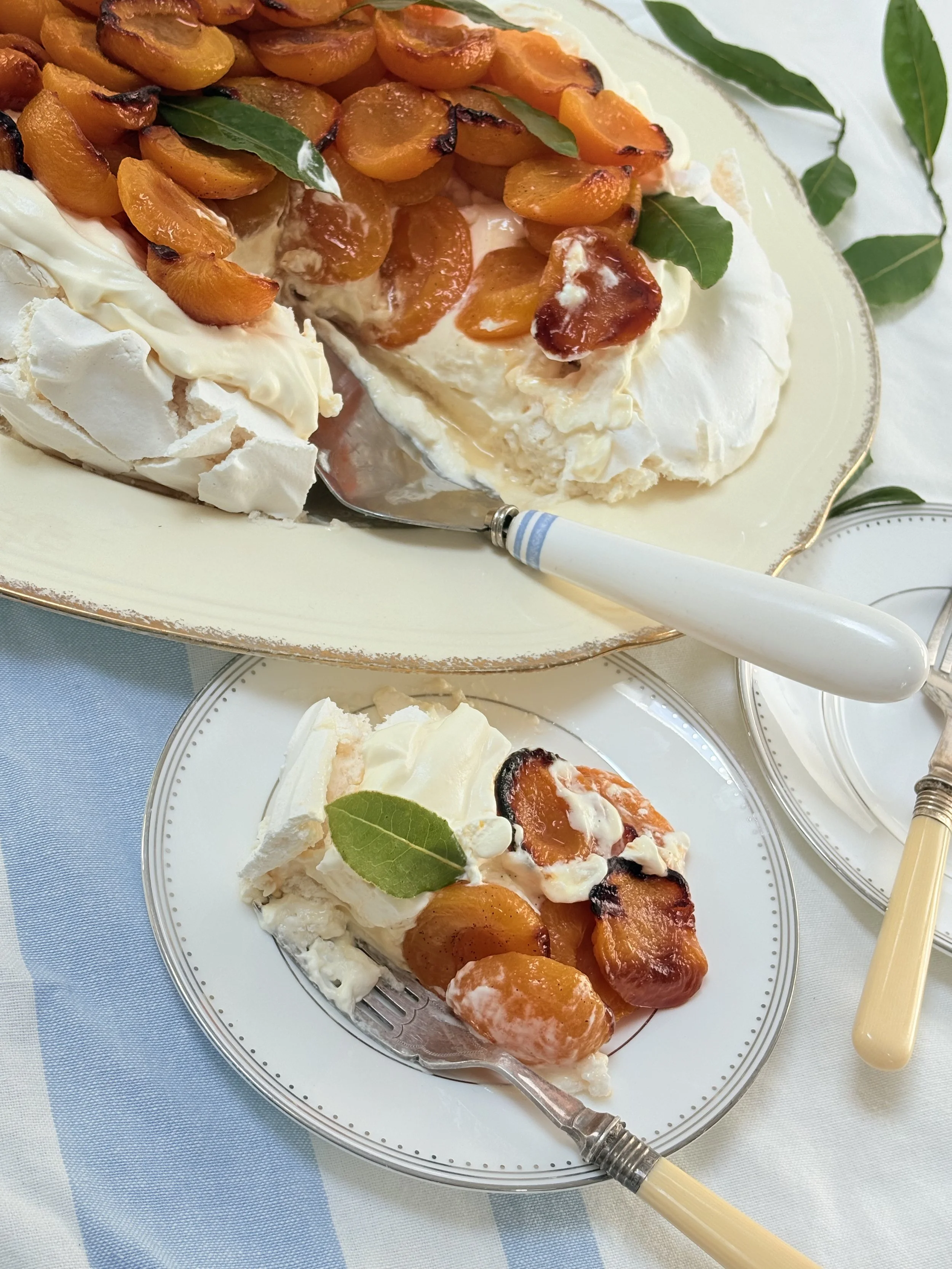 Your perfect summer pudding; pillowy, sweet meringue combined with earthy, luxurious bay creme diplomat, topped with gently roasted apricots.